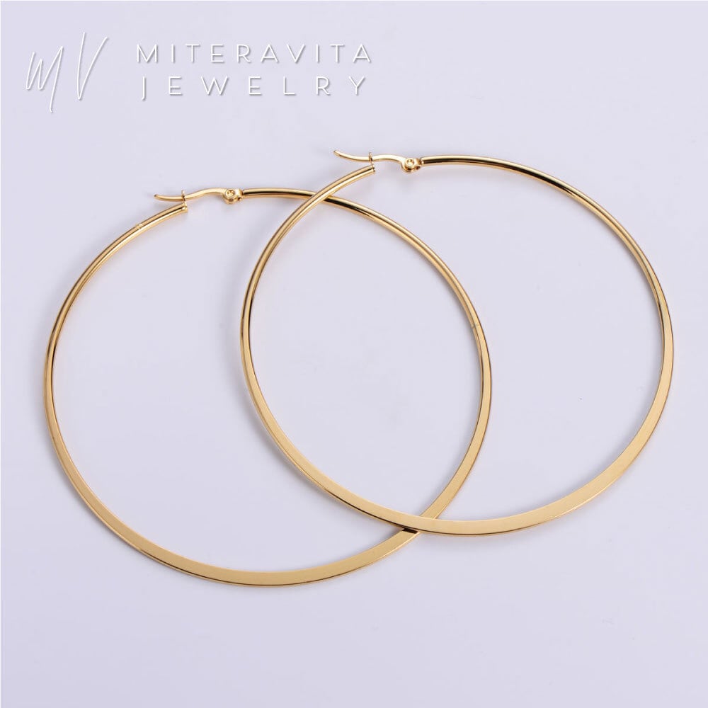 金属アレルギー対応 フープ ピアス サージカルステンレス 両耳用 軽量 75mm ビッグ フープピアス 18ゲージ ゴールド シルバー 【P223】