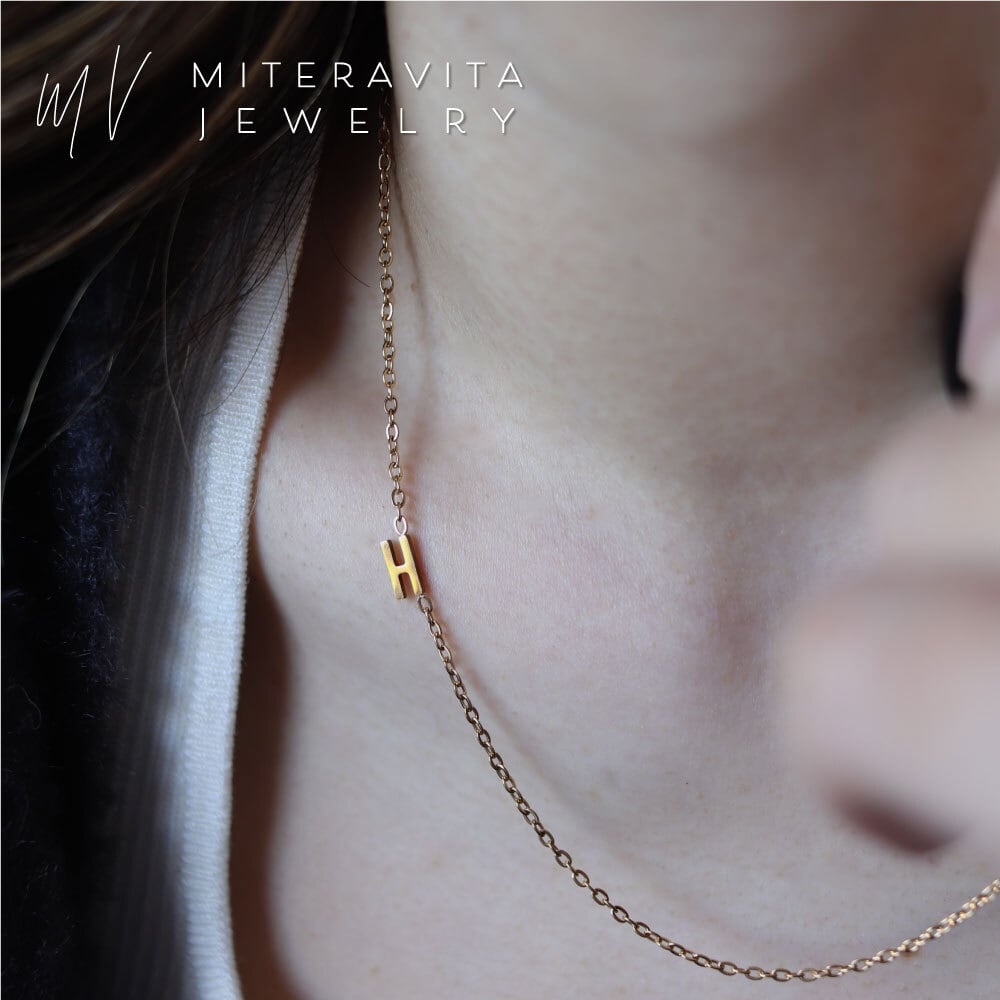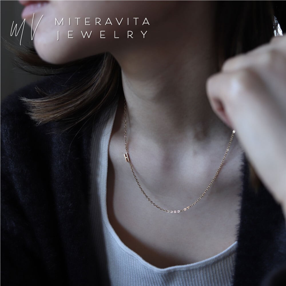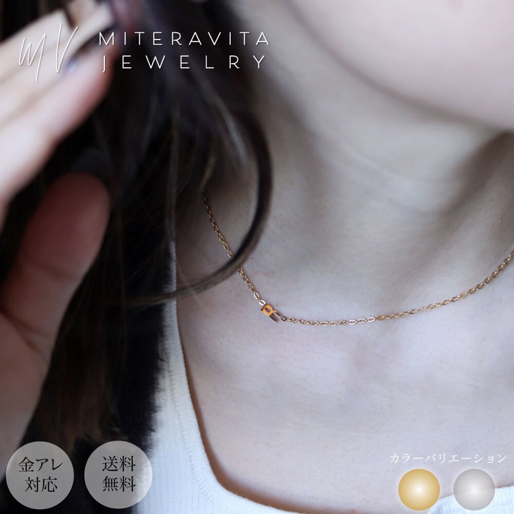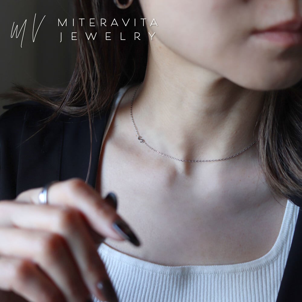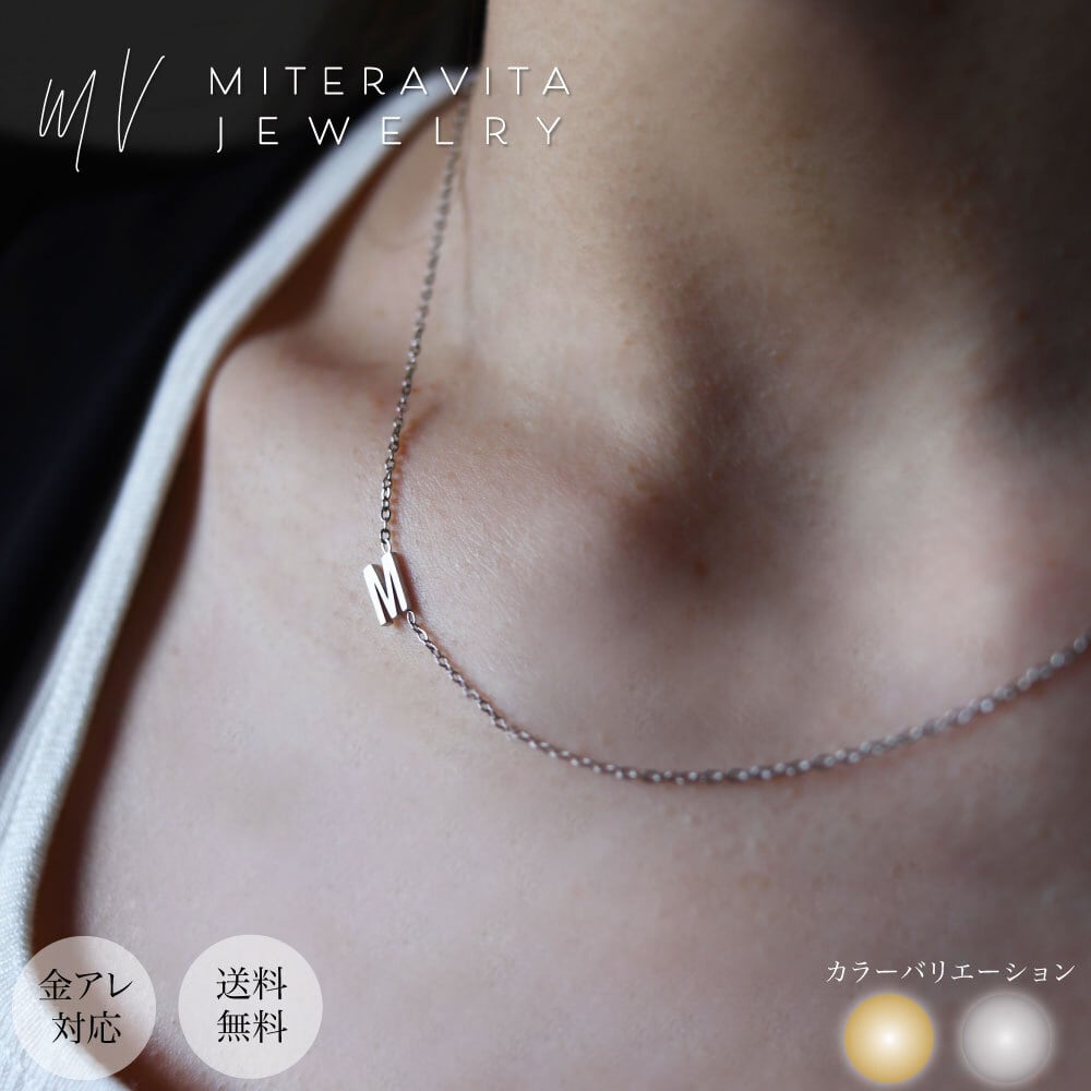 【 シルバーカラー 】金属アレルギー対応 ネックレス サージカルステンレス イニシャル ネックレス 37-45cm【N326】