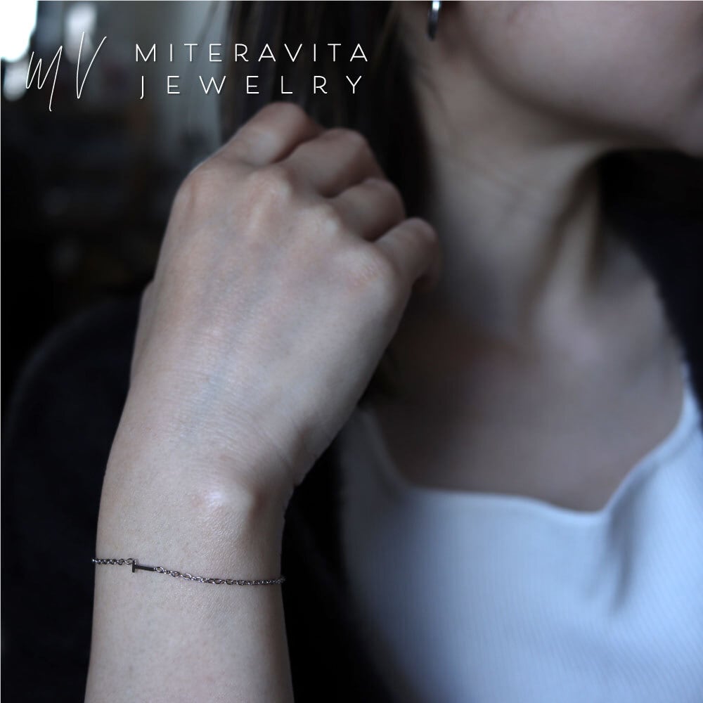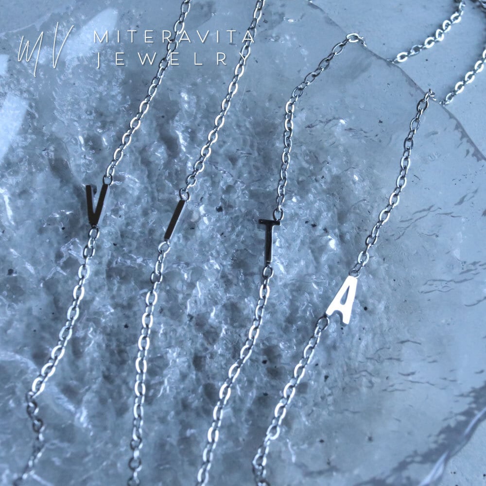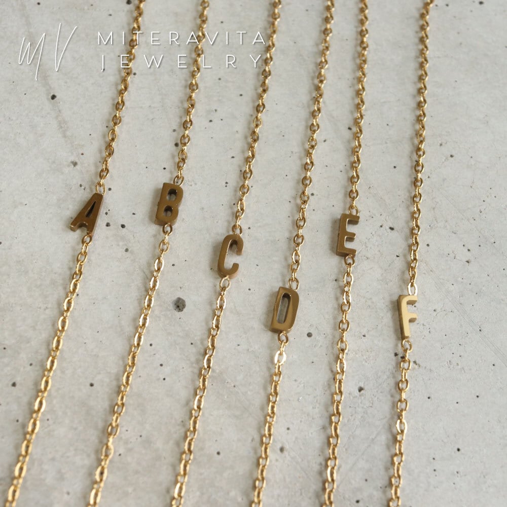 【 シルバーカラー 】金属アレルギー対応 ネックレス サージカルステンレス イニシャル ブレスレット 15-18cm【B162】