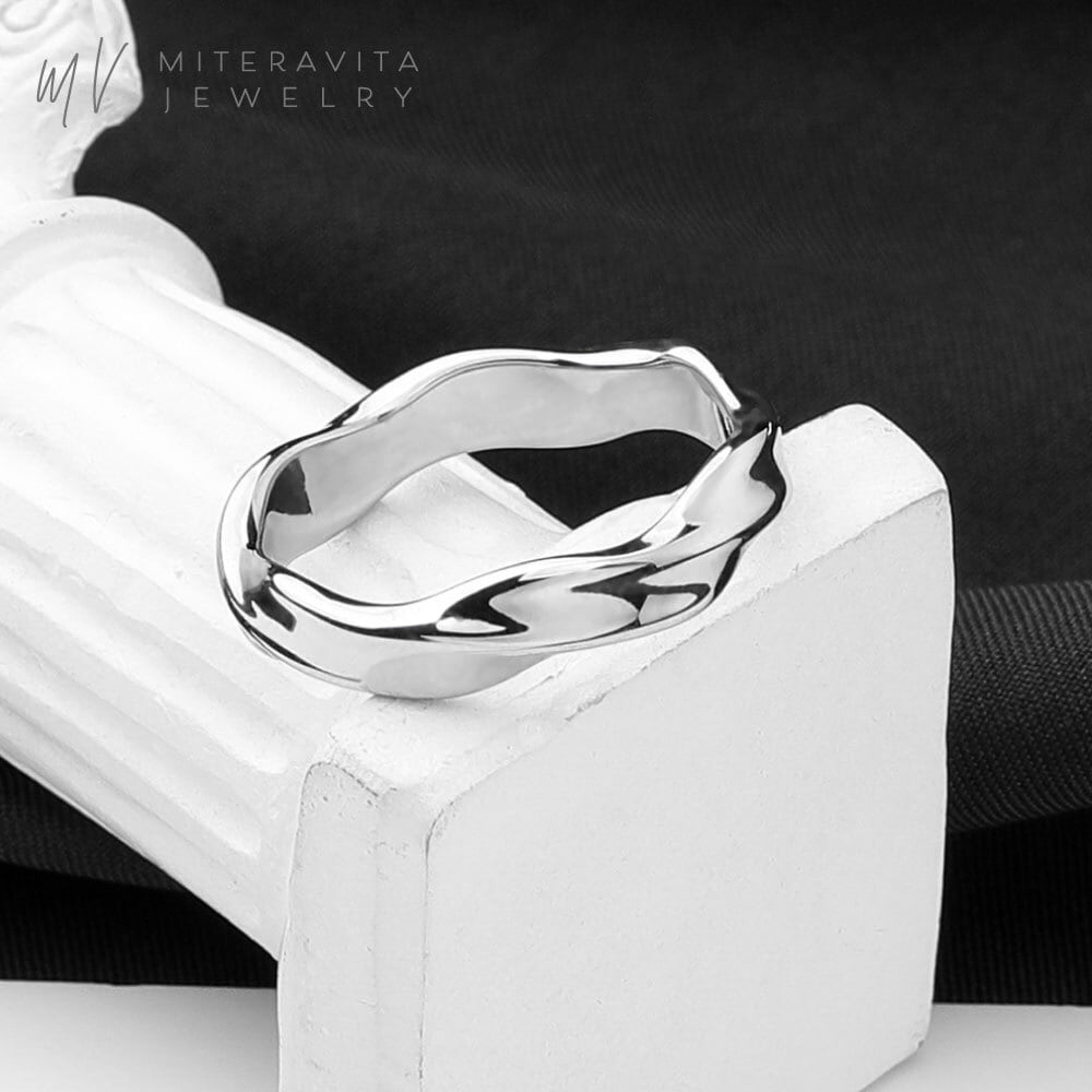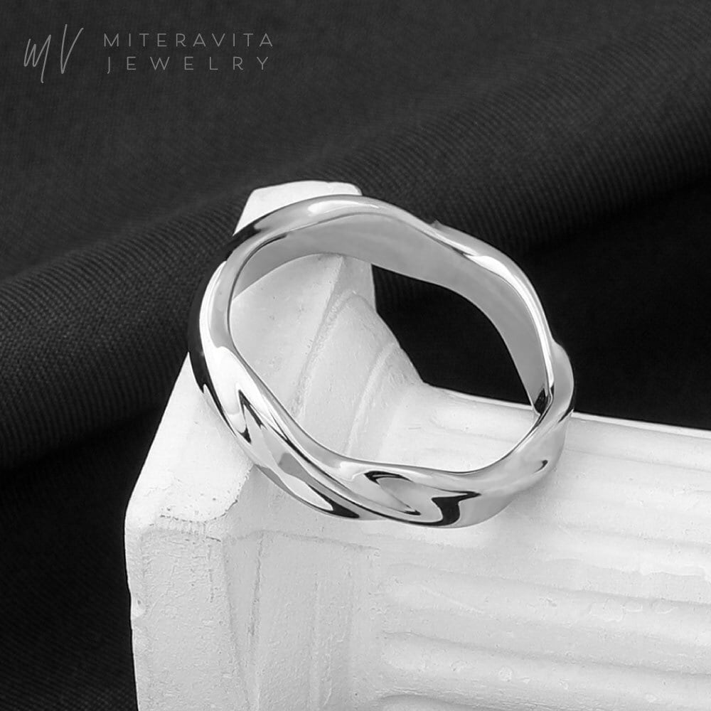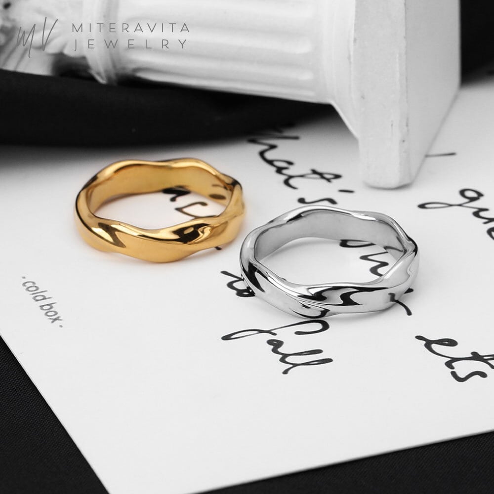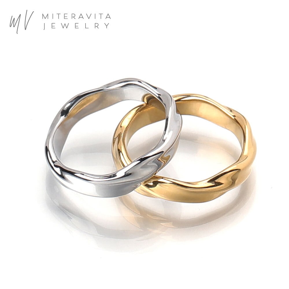シンプルでありながら個性的な幾何学ウェーブデザインは、日常使いから特別なシーンまで幅広く活躍します!サージカルステンレス素材を使用しているため、金属アレルギーの方でも安心してお楽しみいただけます。5mm幅のリングは、ご自身用にもプレゼントにも最適なアイテムです。