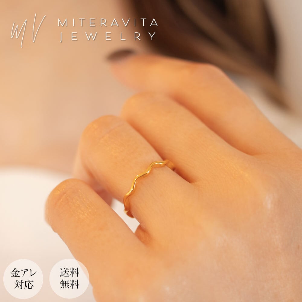金属アレルギー対応 リング サージカルステンレス リング ウェーブデザイン 細リング つけっぱなし リング レディース メンズ 指輪 【R198】