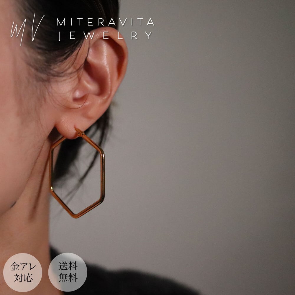 金属アレルギー対応 サージカルステンレス ピアス ヘキサゴン フープピアス 両耳用【p222】