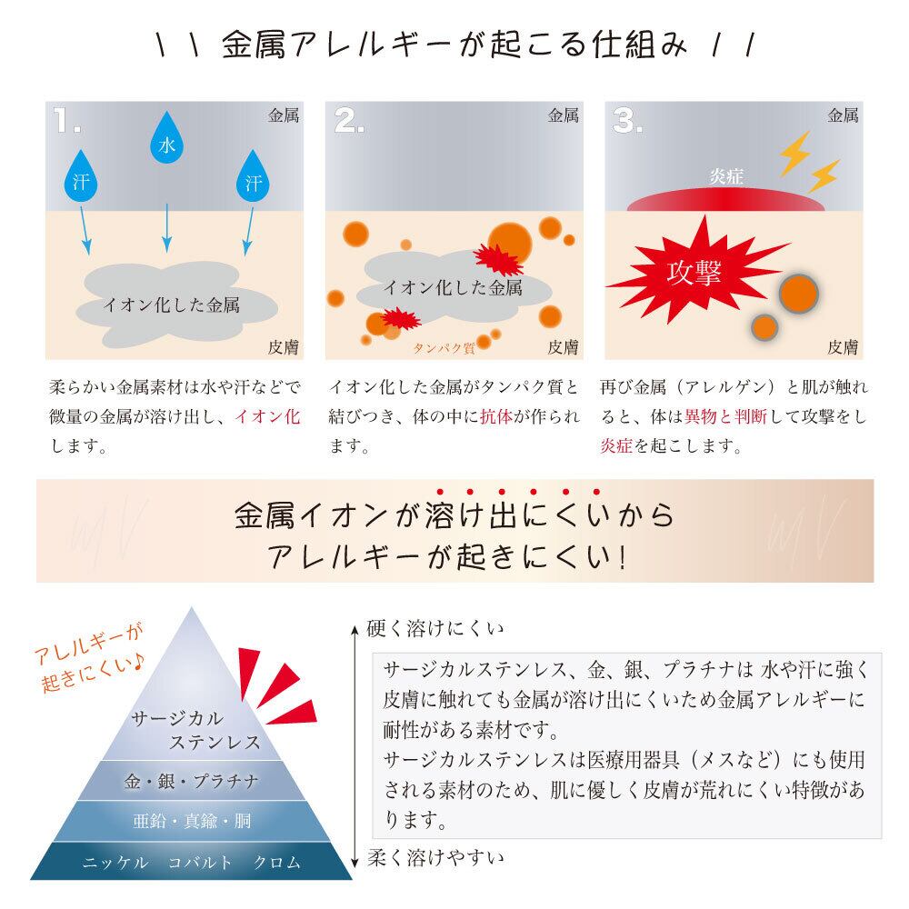 - 金属アレルギー対応の最新のジュエリー、サージカルステンレス、925シルバーを中心に毎日使えるアクセサリーを取り扱いしています。