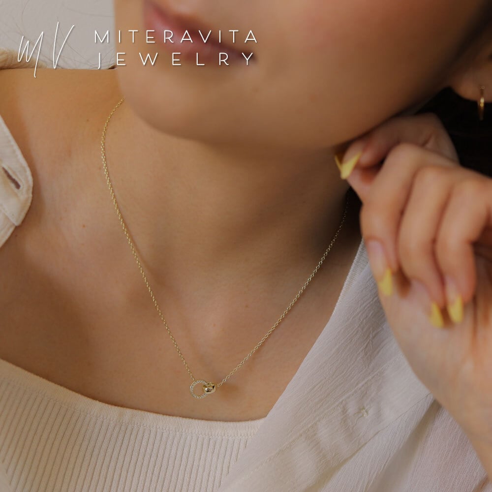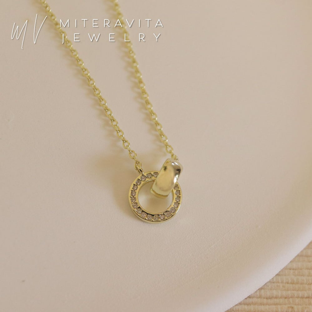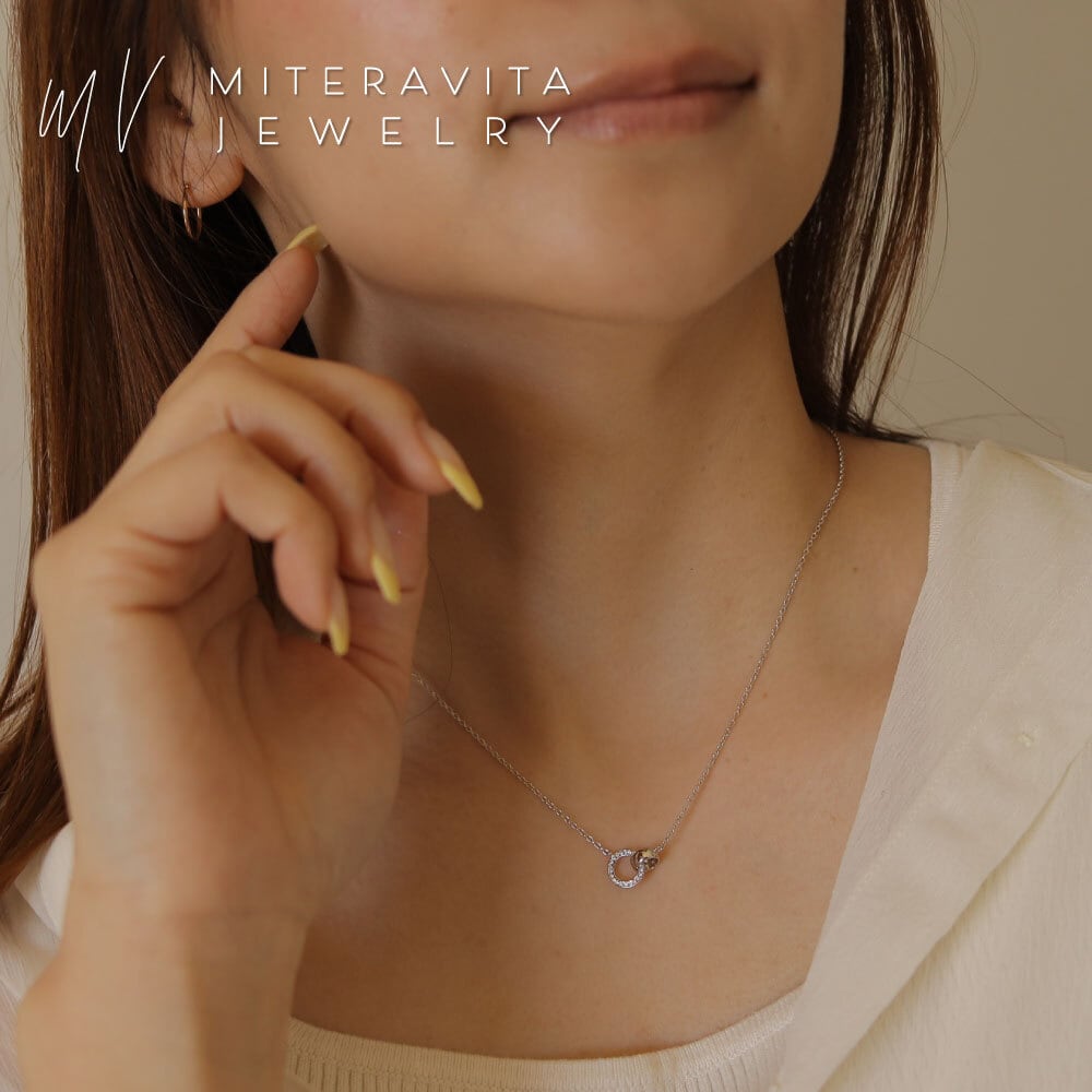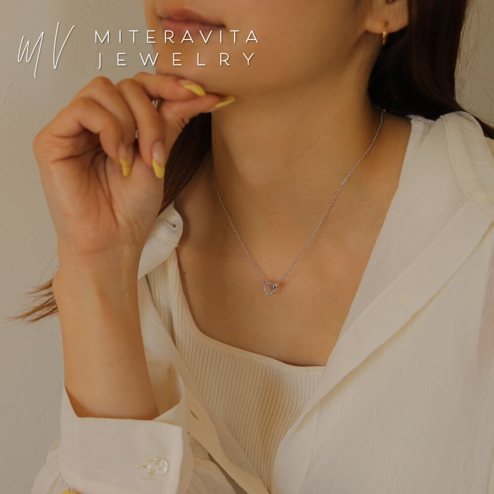シンプルでありながら、華やかなデザインが魅力のジルコニア パヴェダブルサークル ネックレス。