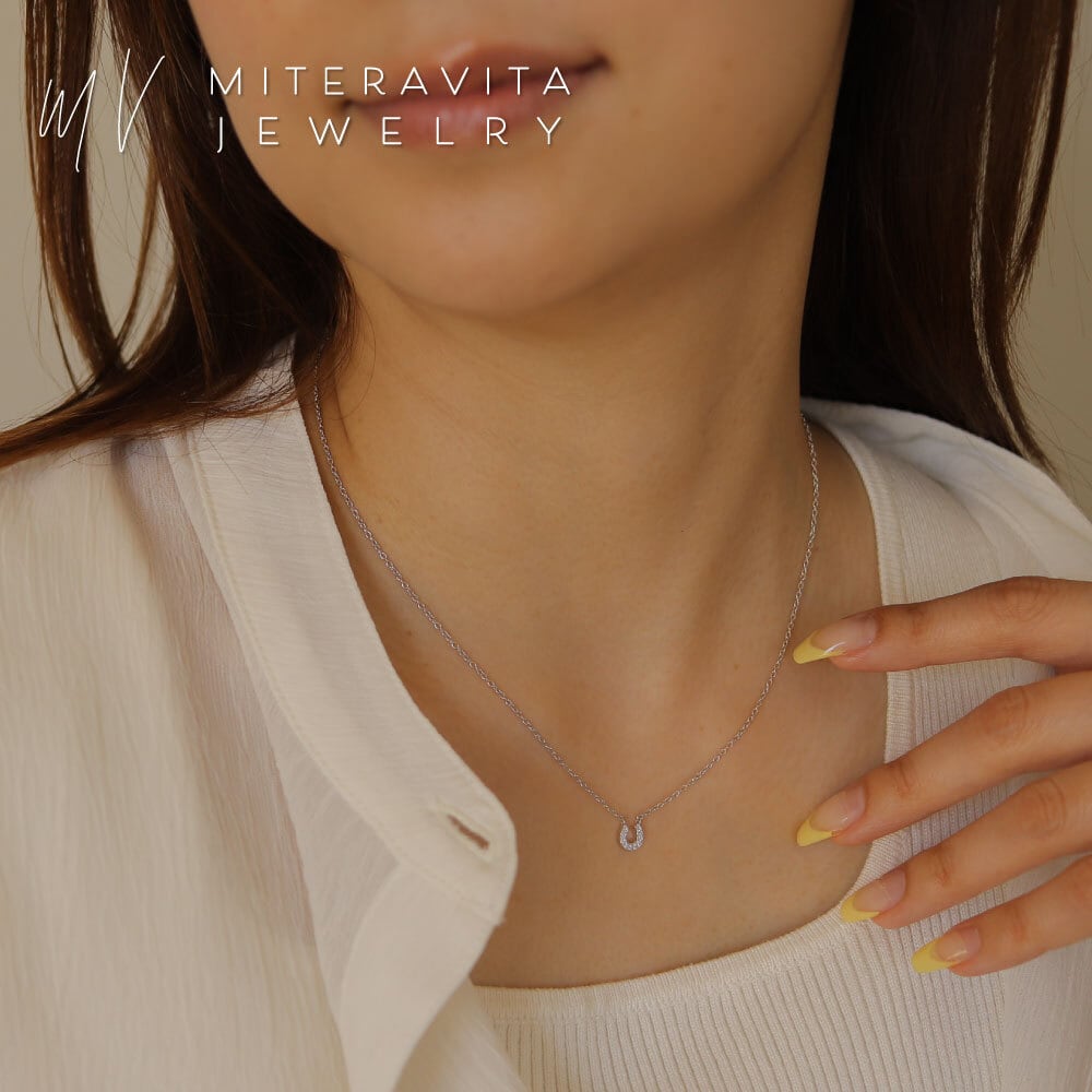 ジルコニア ホースシュー ネックレス シルバー 925 馬蹄 金属アレルギー対応 ネックレス シルバー 925 【N335】