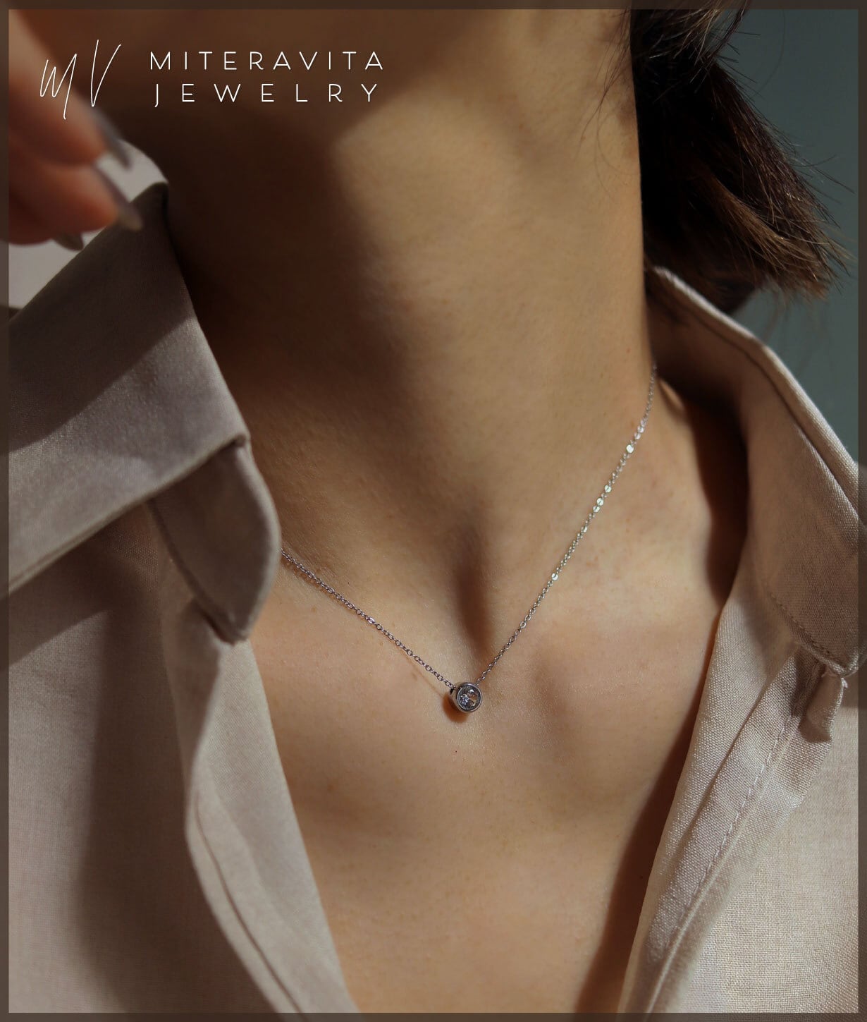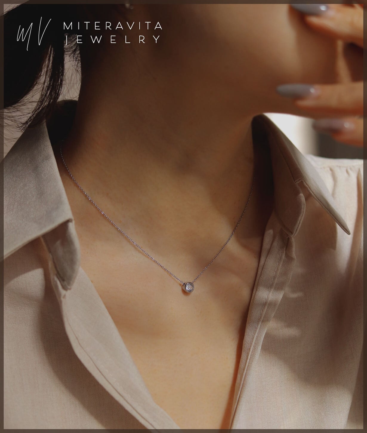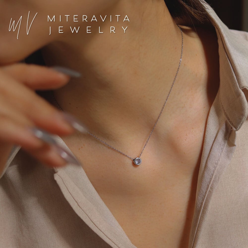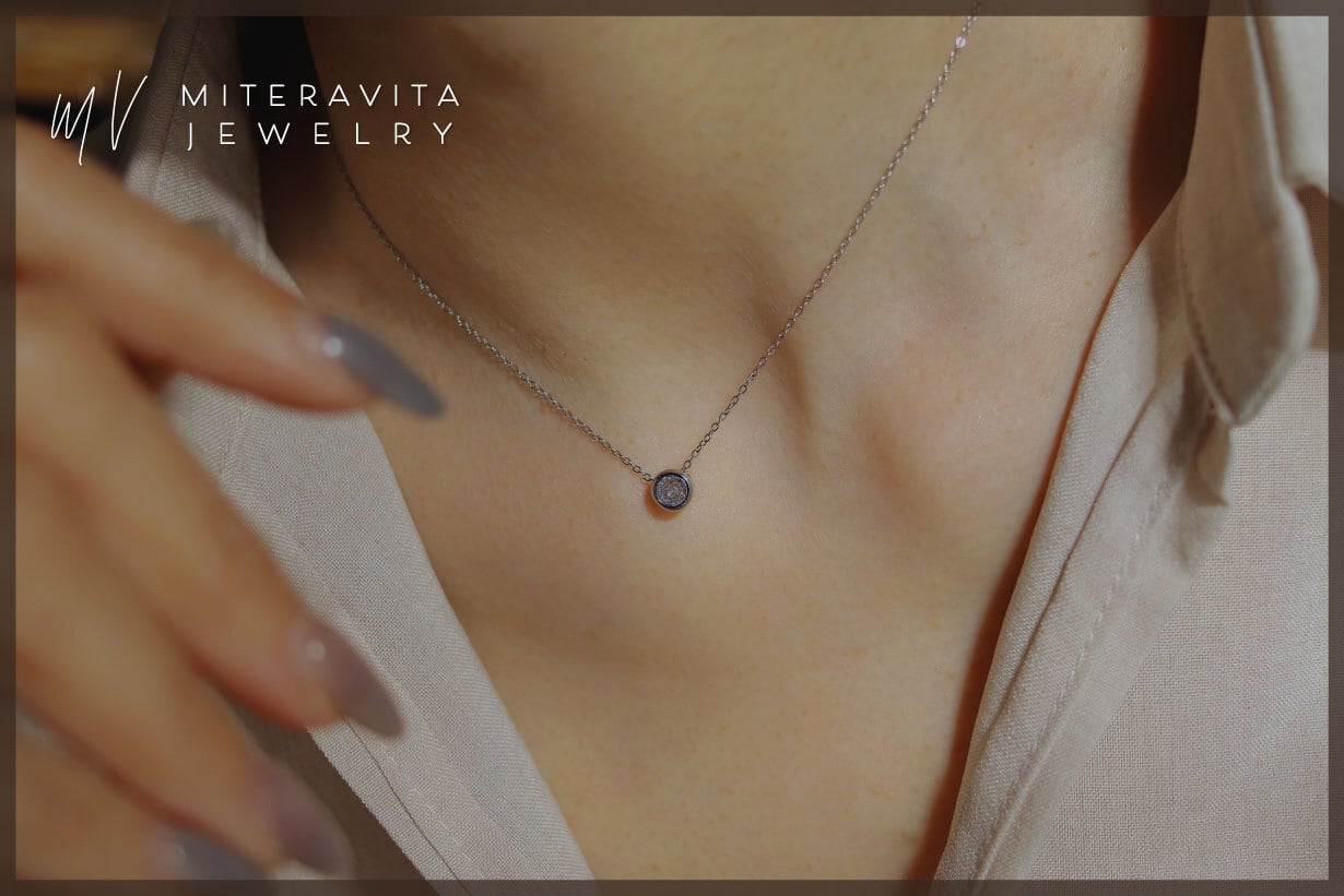 ラウンド型のジルコニアが華やかにひかり、繊細なあずきチェーンが上品な印象を与えます。