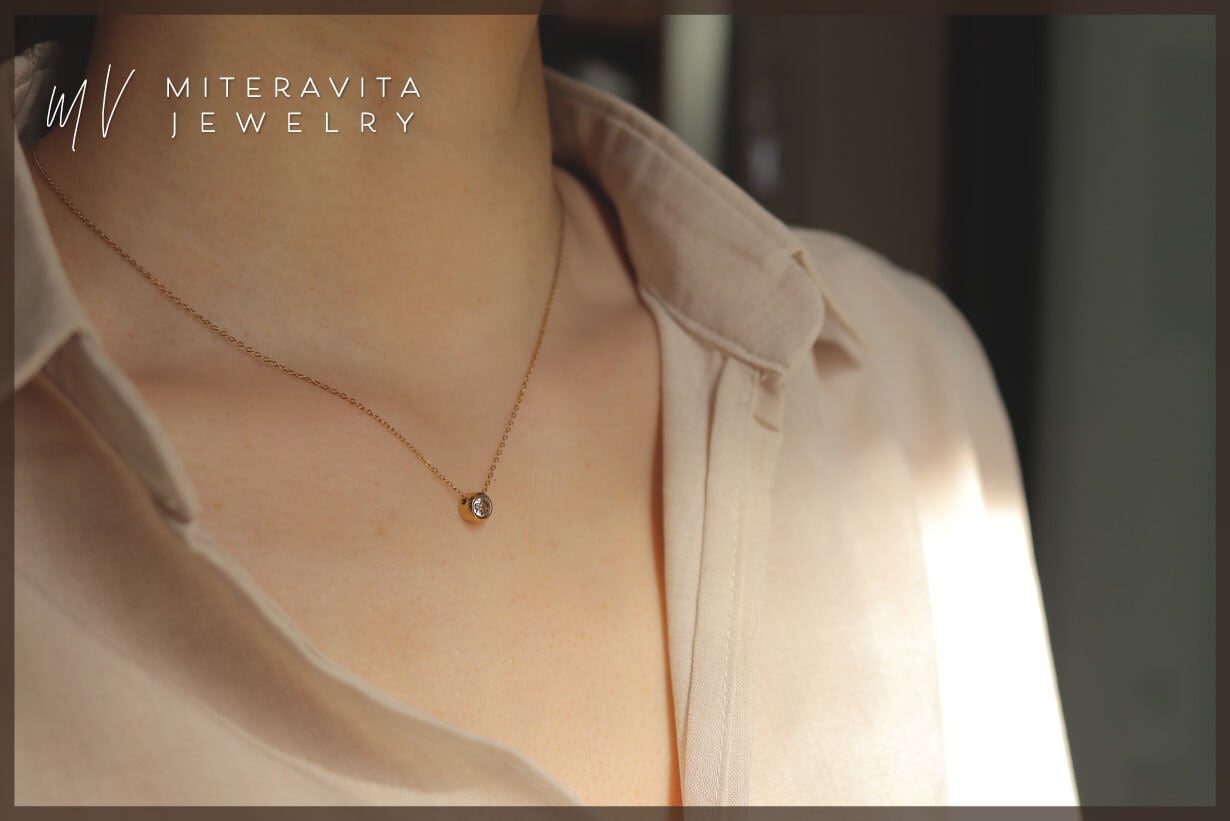 タイプ:1粒 台座ジルコニア あずきチェーン ネックレス38-43cm