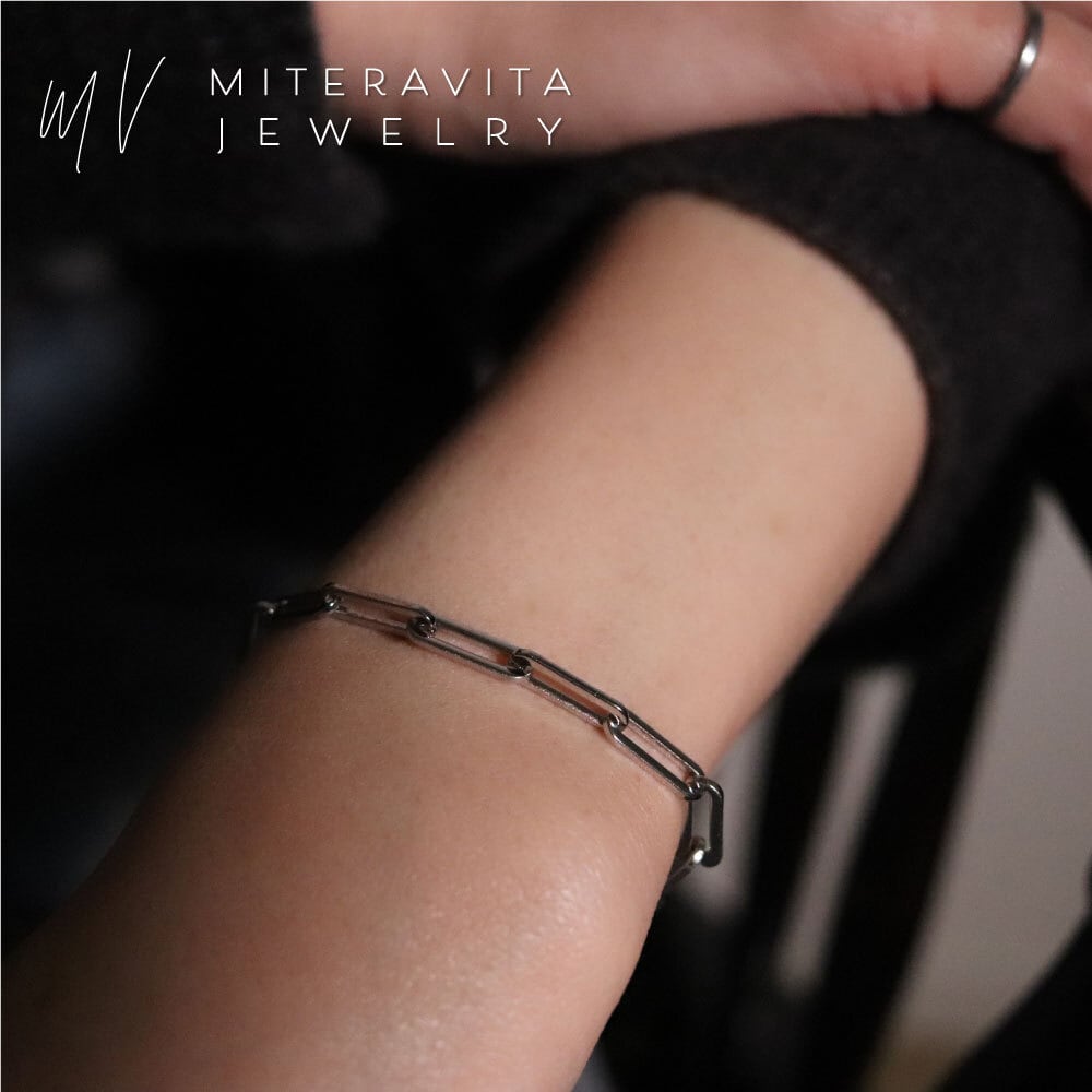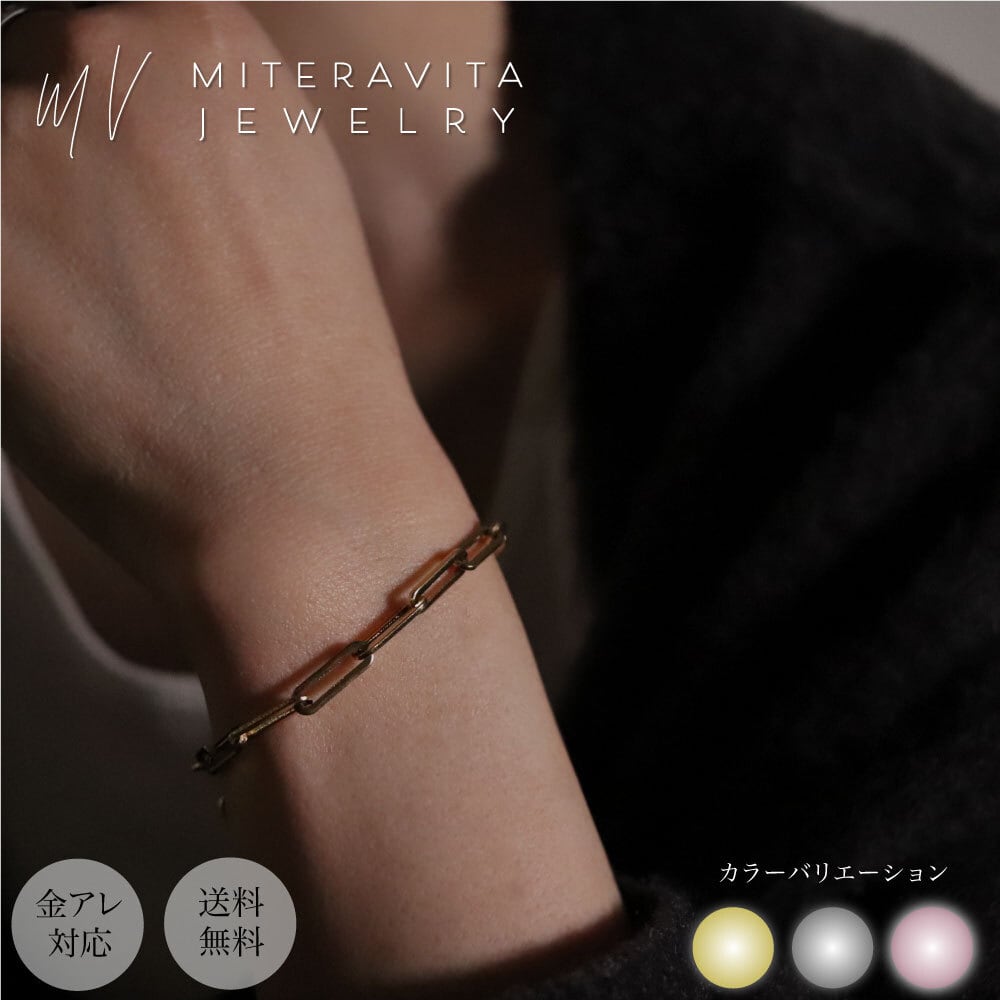 金属アレルギー対応 ブレスレット サージカル ステンレス ペーパークリップ ファット チェーン【B3】