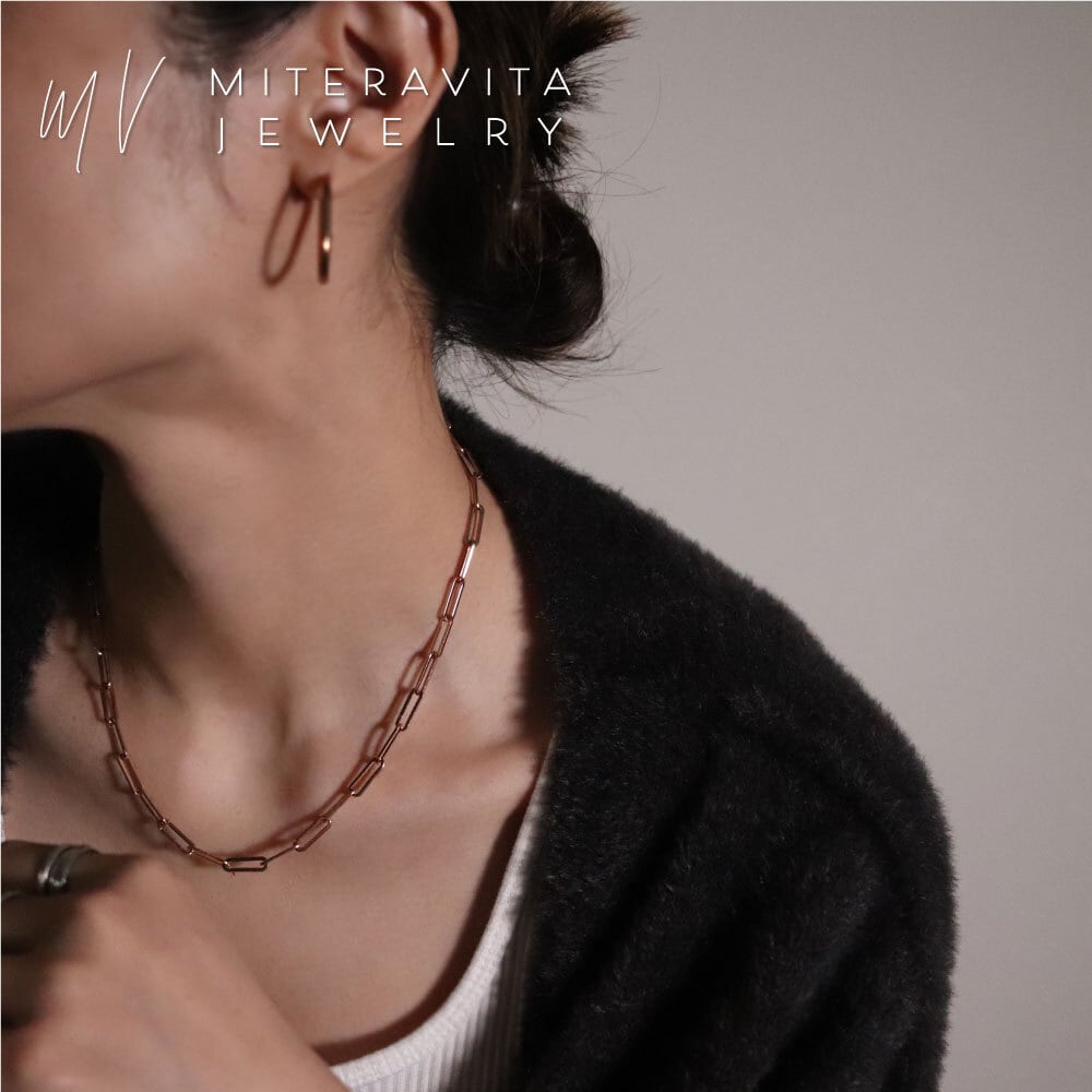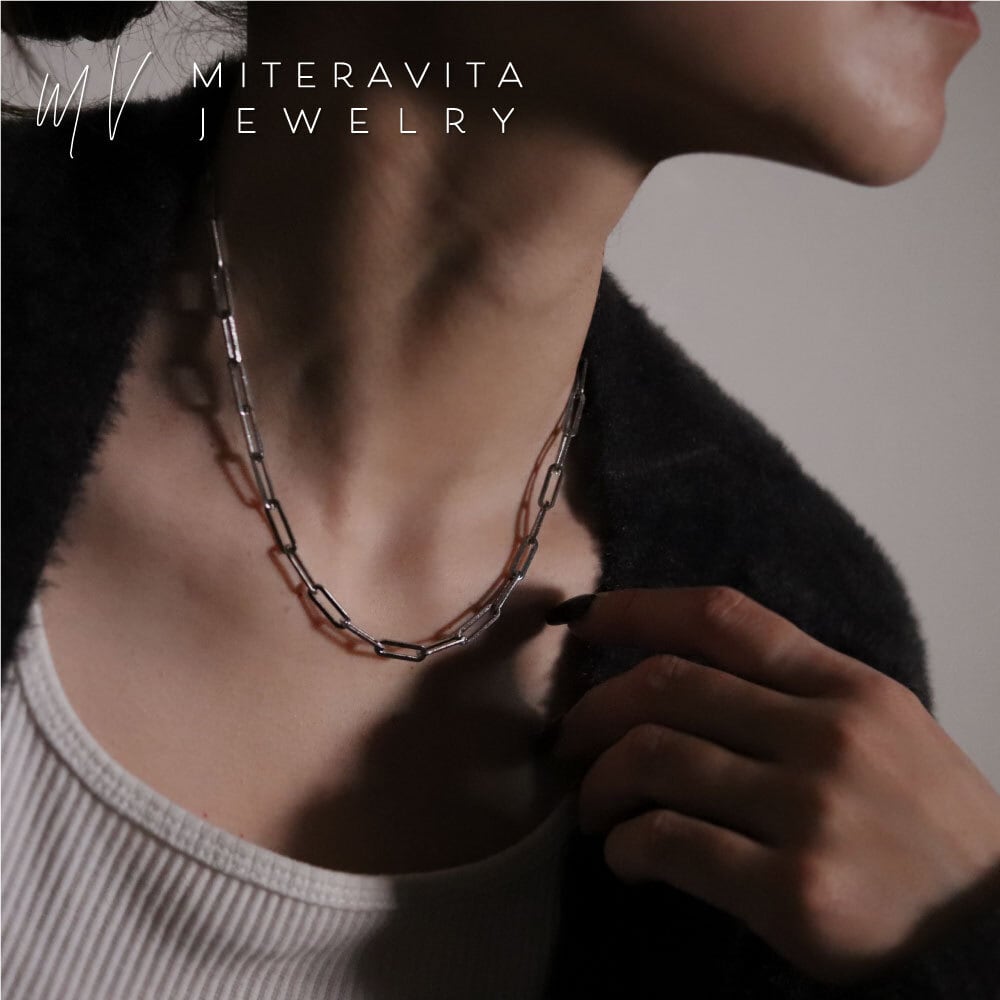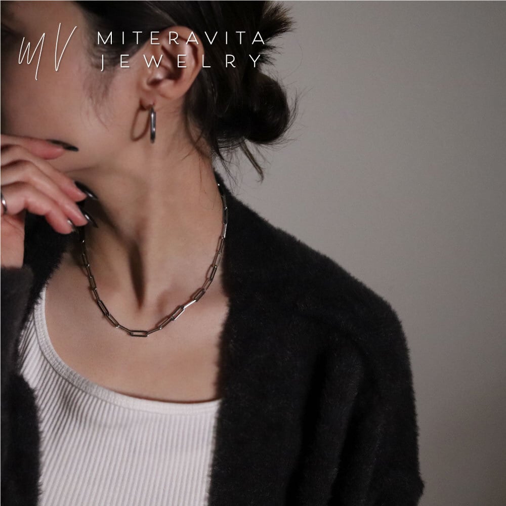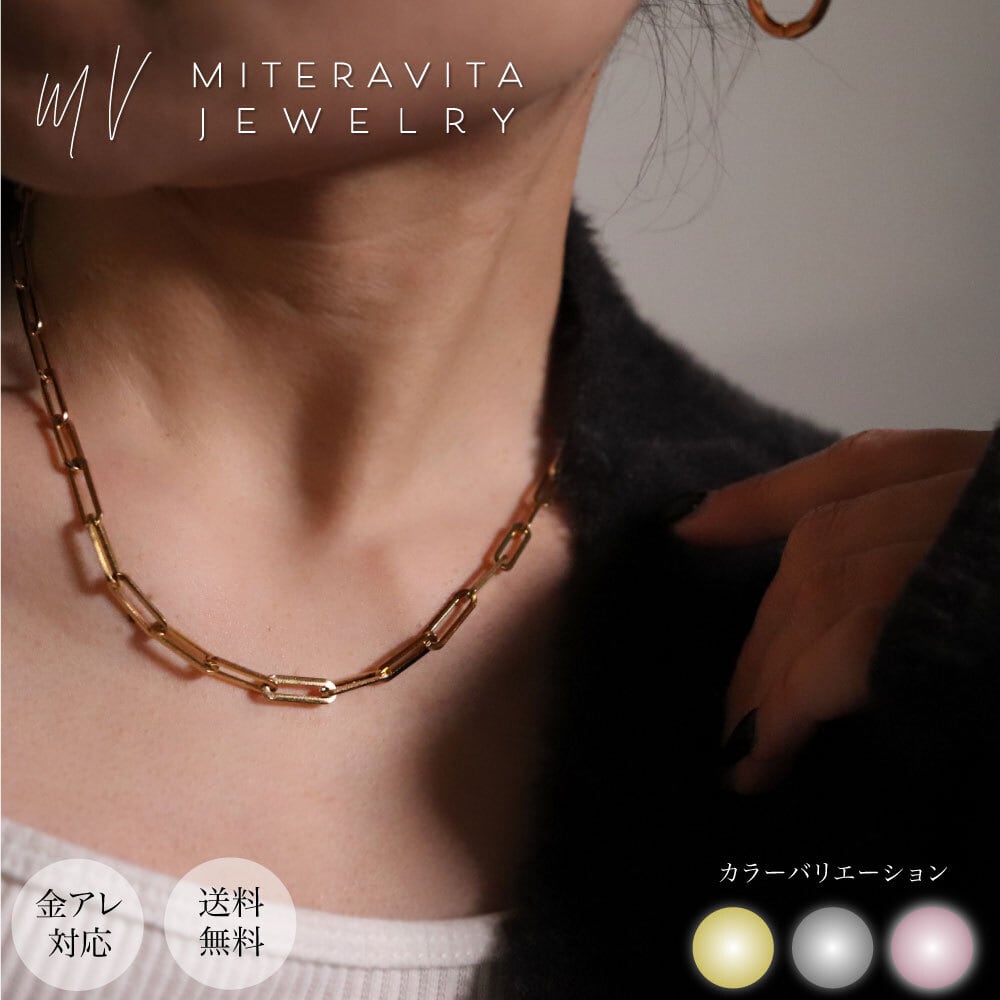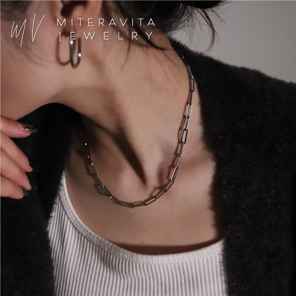 サージカルステンレス ネックレス ペーパークリップ チェーン レオンチェーン ネックレス 42cm 金属アレルギー対応 SUS316L【N10】