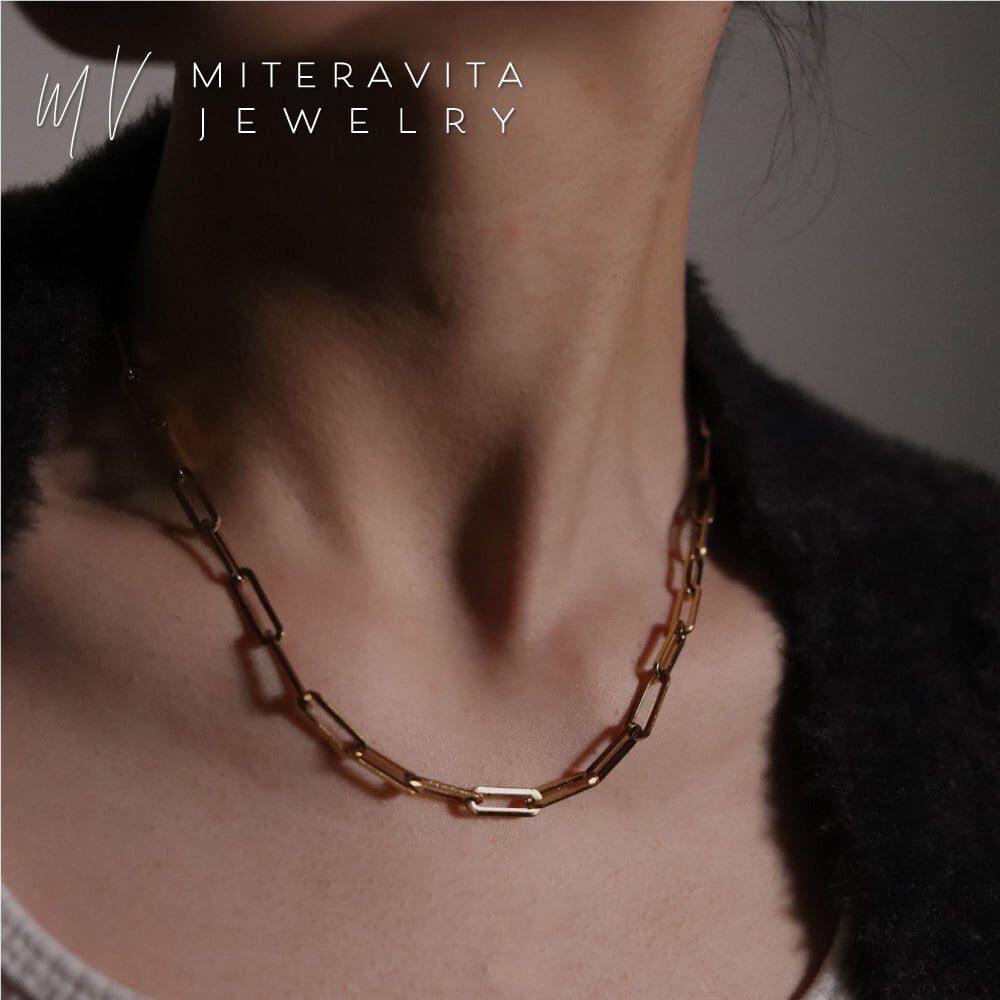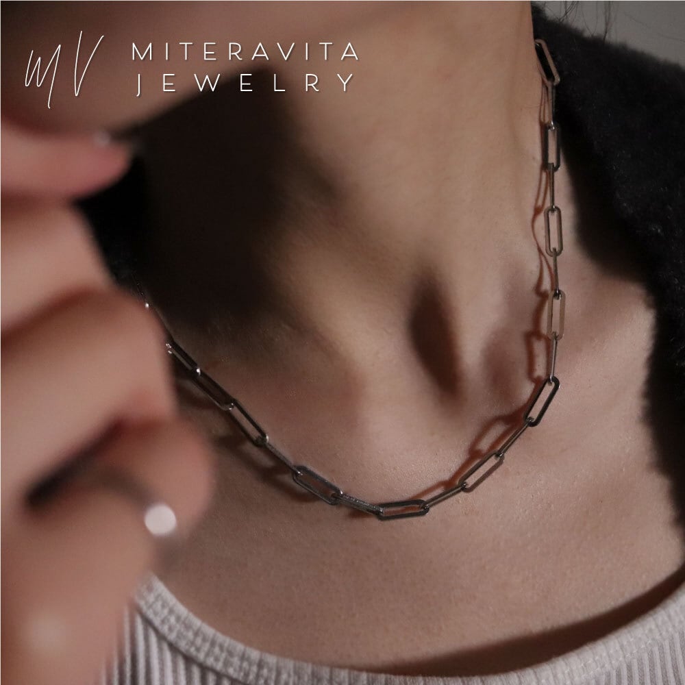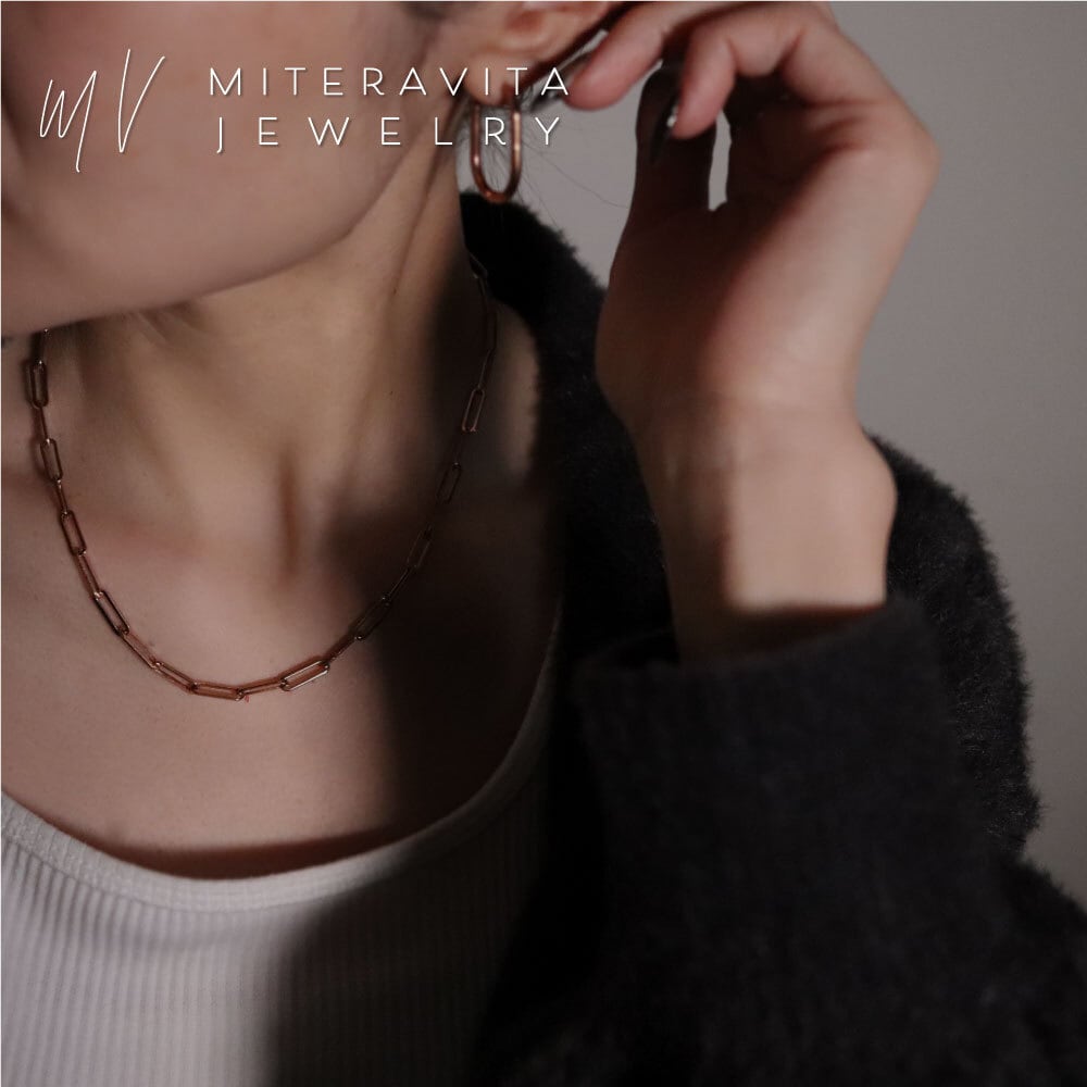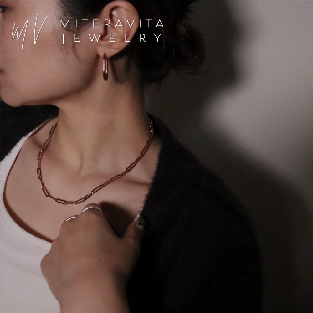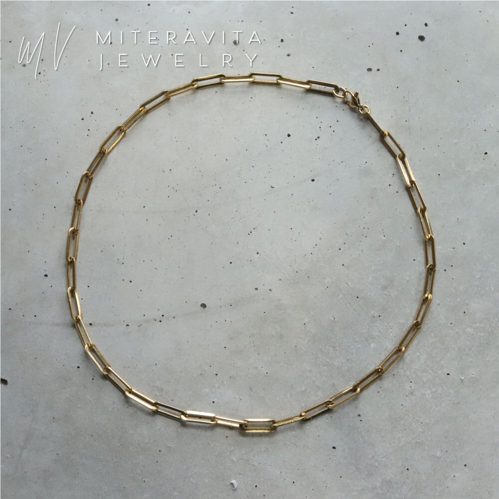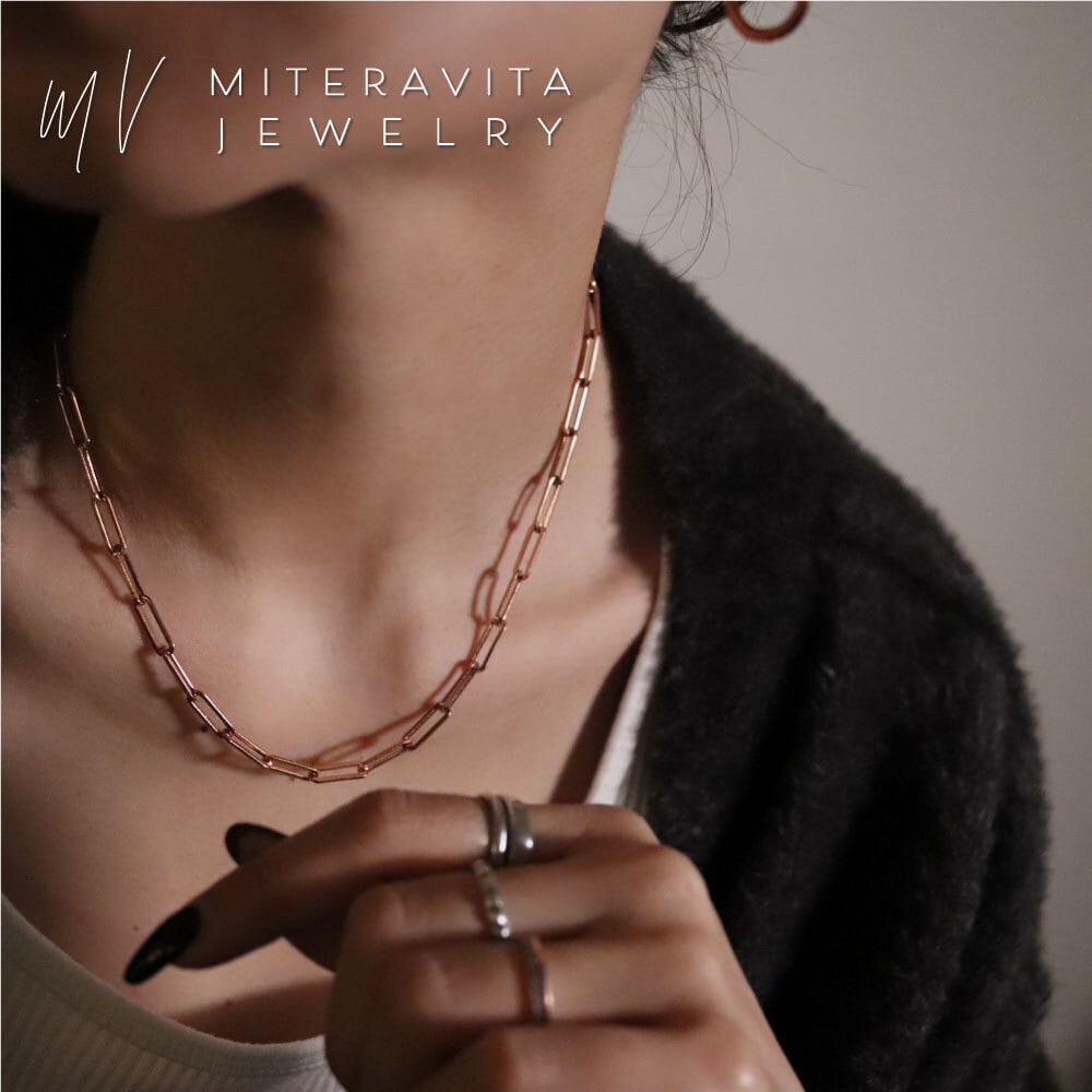 サージカルステンレス ネックレス ペーパークリップ チェーン レオンチェーン ネックレス 42cm 金属アレルギー対応 SUS316L【N10】