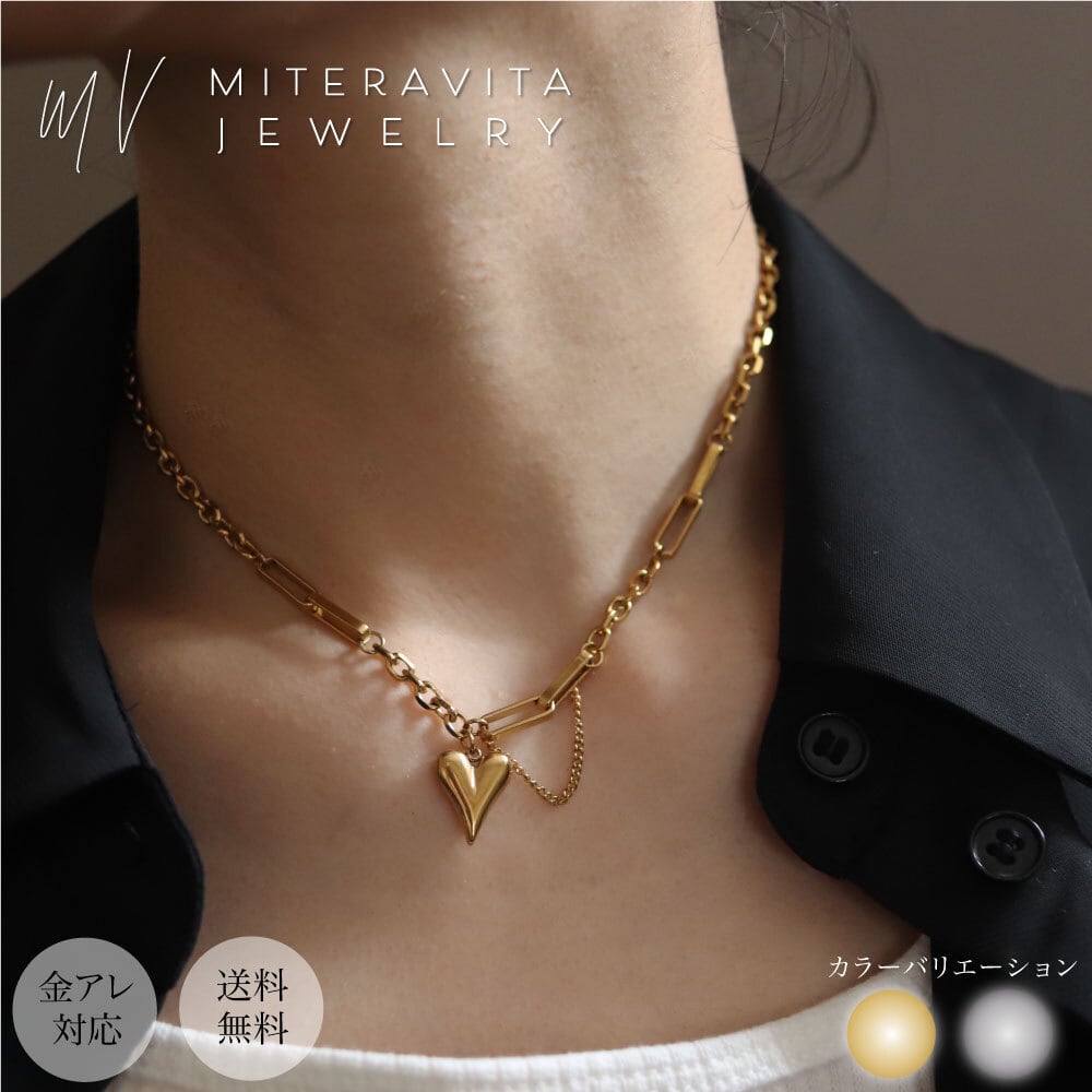 ぷっくりとした厚みのあるハートチャーム付きのレイヤードチェーン。