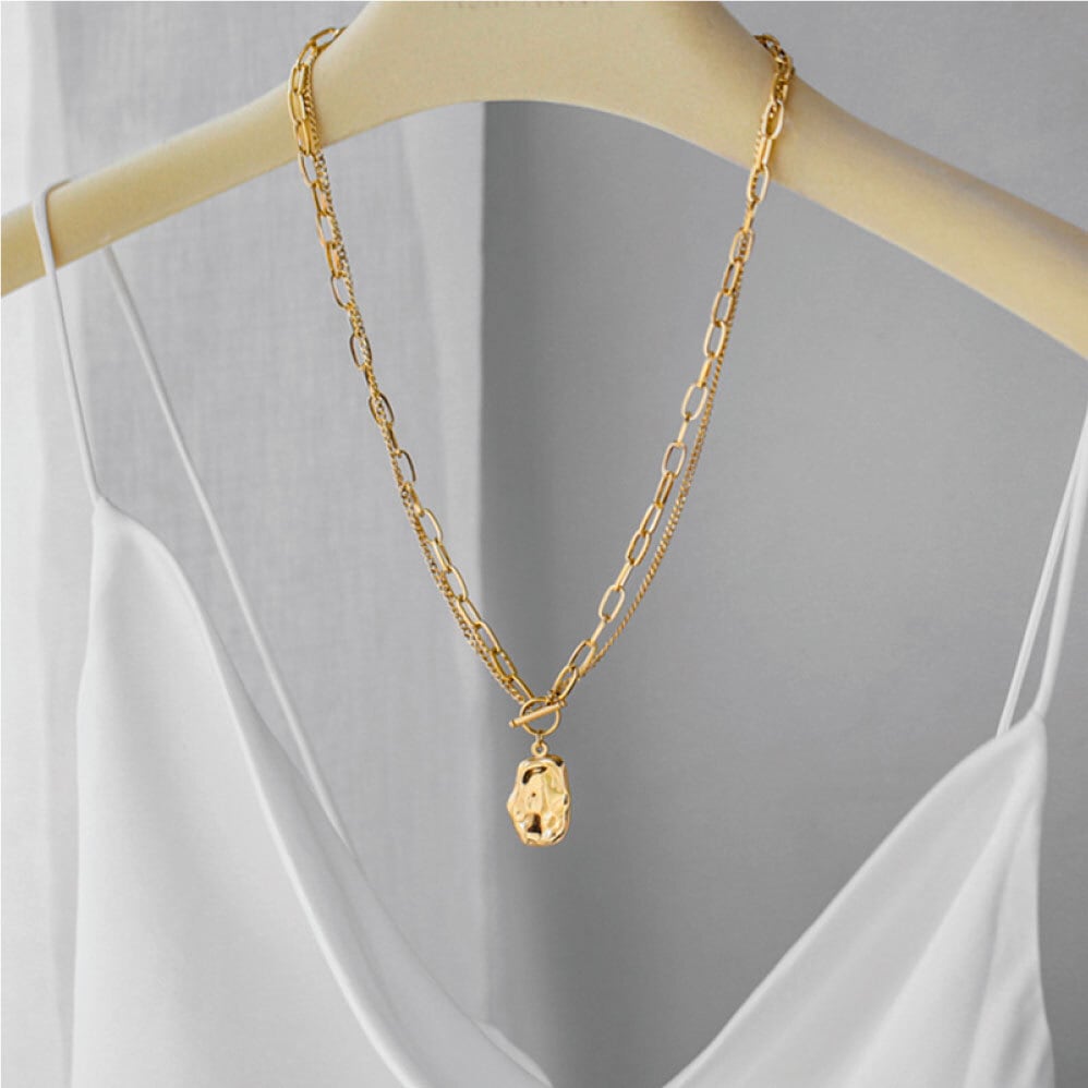 ・タイプ:レイヤードチェーン ハンマー コイン ペンダント