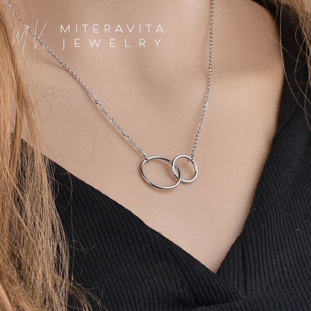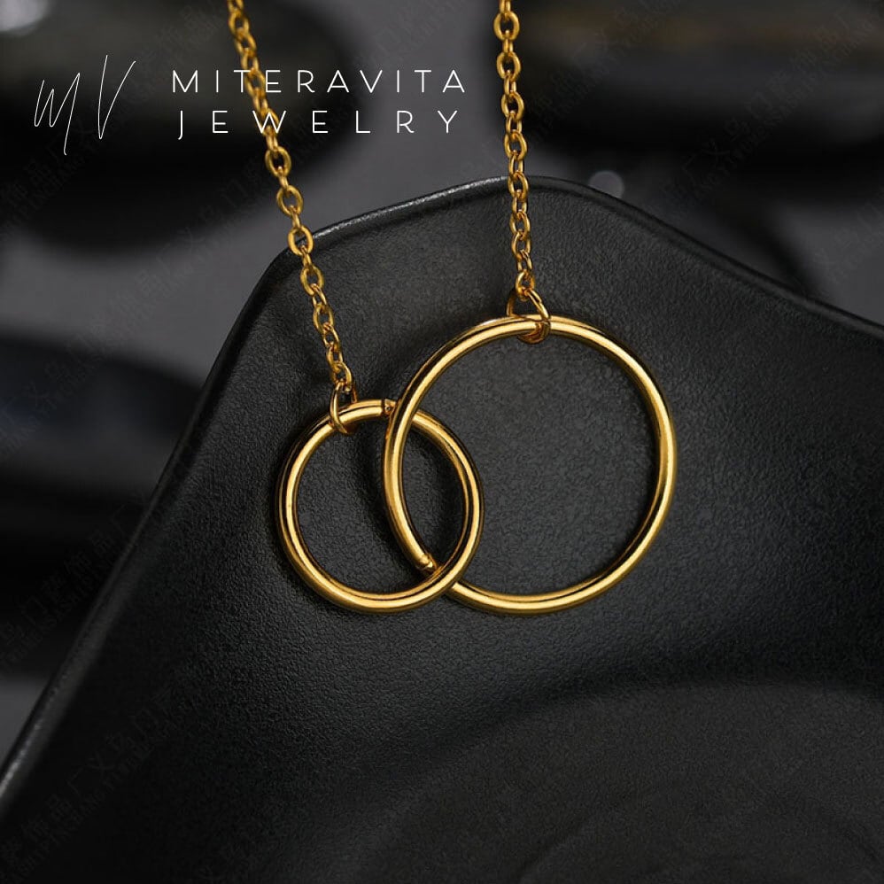 サージカルステンレス 金属アレルギー対応 ネックレス ダブルサークルリングペンダント ネックレス 金アレ対応 ゴールド シルバー【N148】