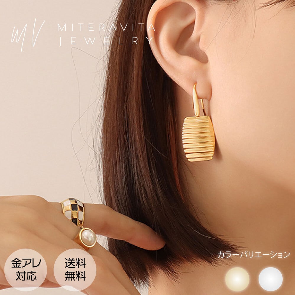 金属アレルギー対応 ピアス サージカルステンレス 両耳用 ハンマーストライプ ピアス ゴールド シルバー 【P72】