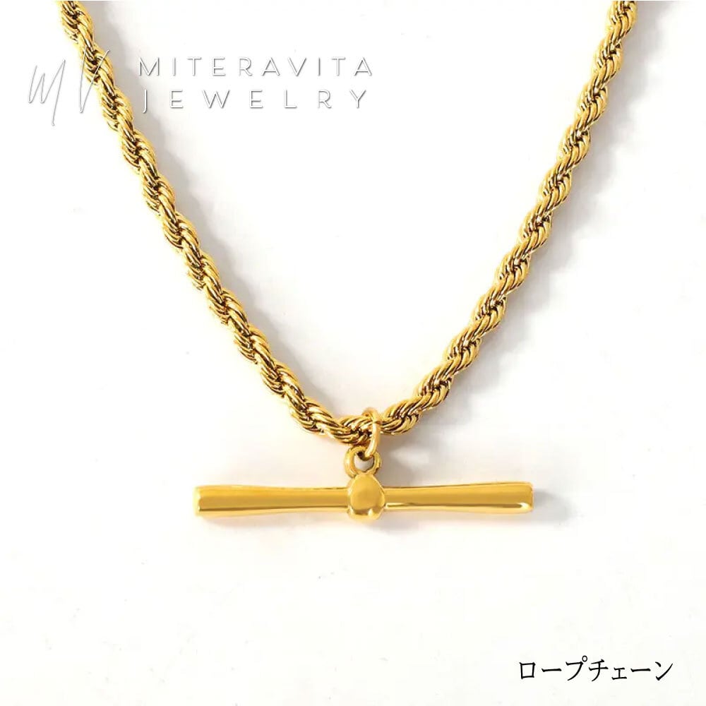 金属アレルギー対応 ネックレス サージカルステンレス Tバーペンダント ネックレス 45cm ロープチェーン フィガロチェーン キヘイチェーン ネックレス 金アレ対応 ゴールド K18 つけっぱなし 変色しない 錆びない【N210】