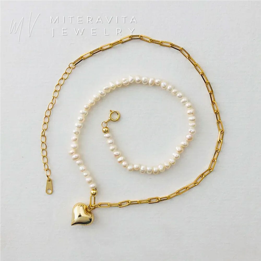 タイプ:ゴールドハートペンダント 淡水パール アシンメトリー ネックレス 35cm