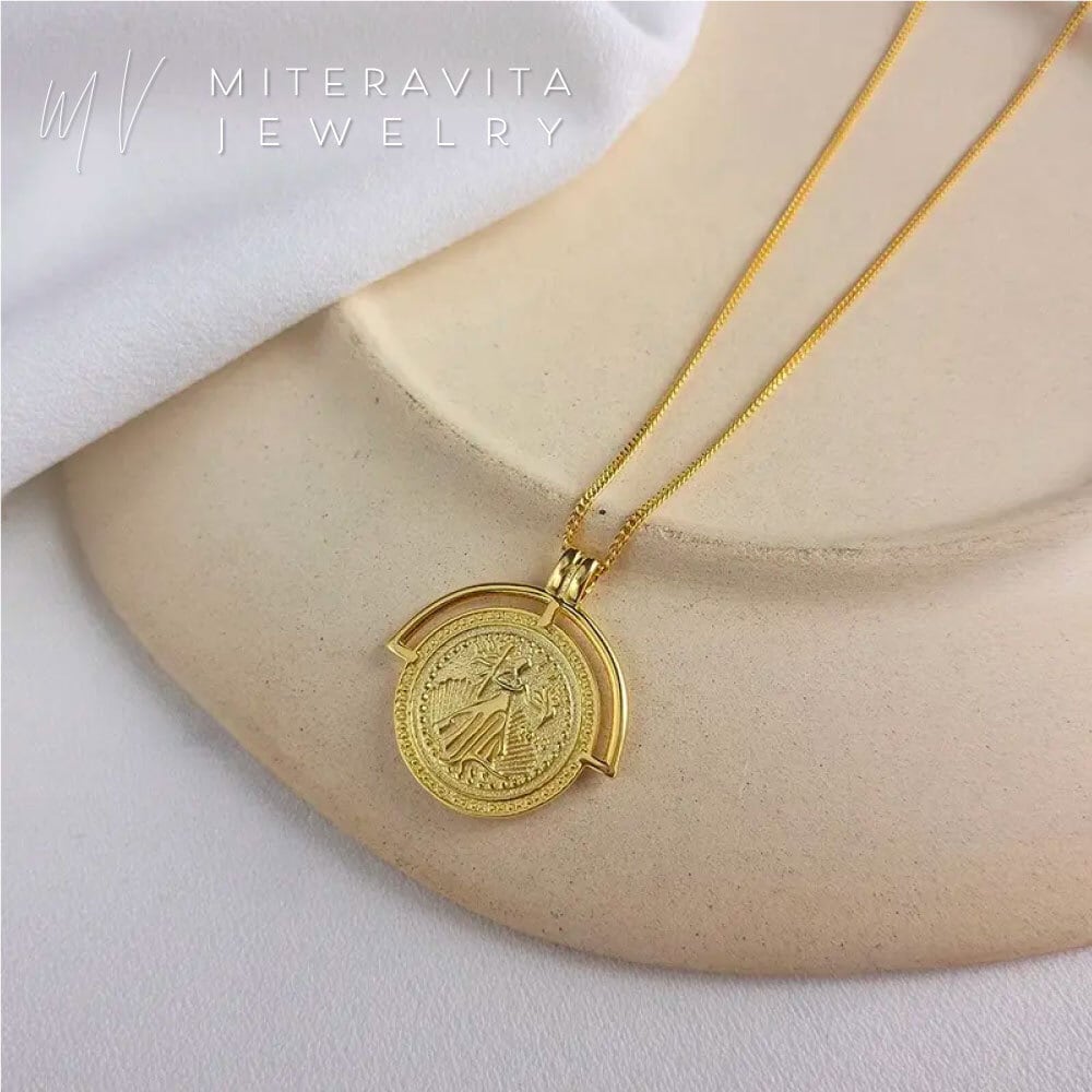 金属アレルギー対応 ネックレス シルバー 925 メダリオンペンダント ネックレス 40cm【N224】