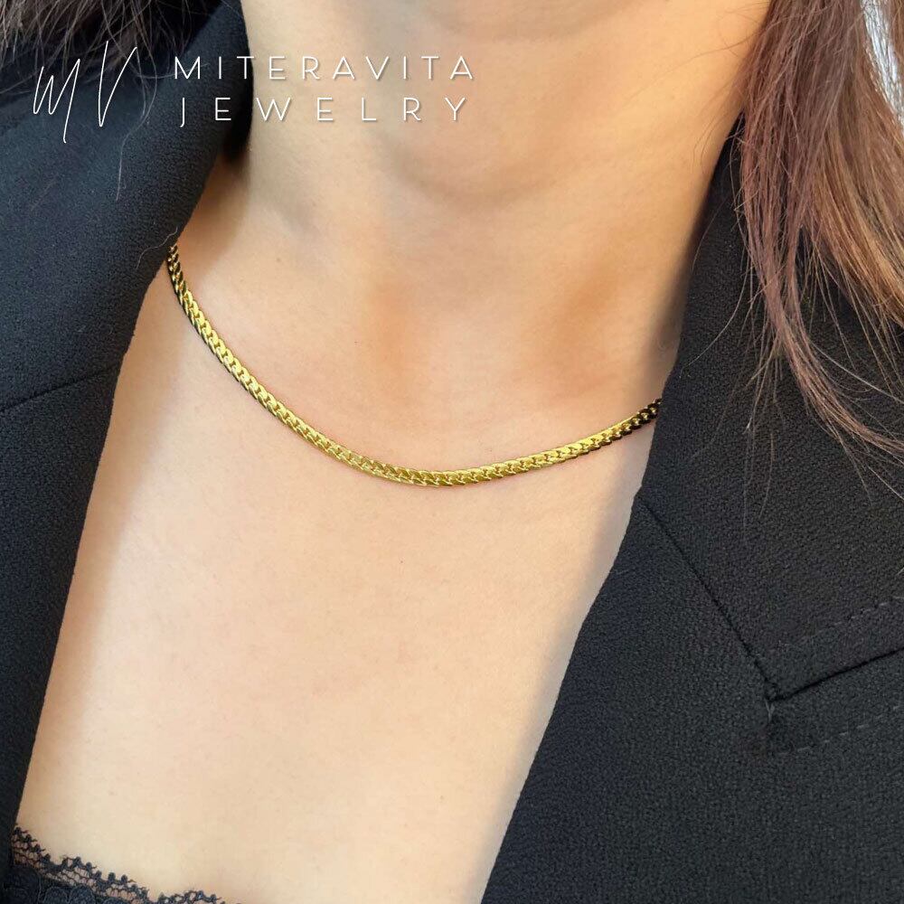 金属アレルギー対応 ネックレス サージカルステンレス 2.5mm幅 5.5mm幅 フラットキューバンチェーン ネックレス 42cm 金アレ対応 ゴールド K18 つけっぱなし 変色しない 錆びない【N235】
